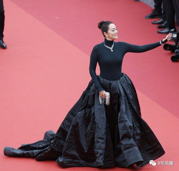 今年,巩俐是第19次出席戛纳红毯,她身穿Alaia的黑色拖地长裙,脖子上还戴着价值连城的Cartier珠宝,简约中不失强大气场。