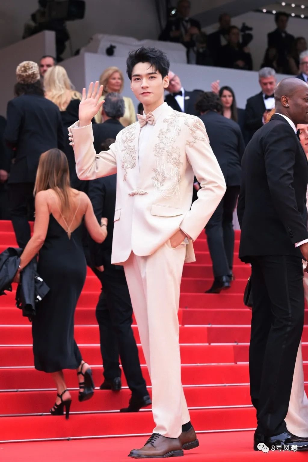 第一次来到戛纳红毯的龚俊,身穿JasonWu的"首次男装特别定制"设计款刺绣白色西装。