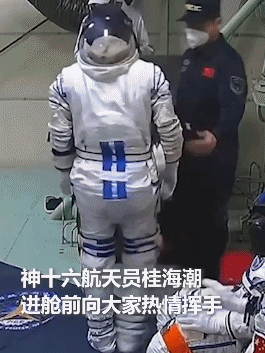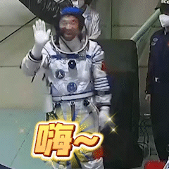 航天员桂海潮热情地向镜头