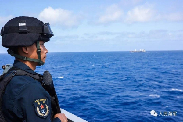 由于海上轻雾弥漫,淄博舰启用雷达、光电红外、激光夜视仪等多种观察手段对目标进行监视,并用强光灯扫海,拉响汽笛驱离。
