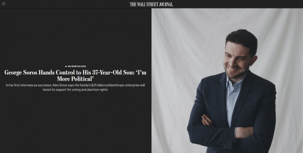 而在接受《华尔街日报》专访时,亚历山大·索罗斯则自称比父亲"更加政治化",他计划扩大父亲的"自由主义目标",对于特朗普欲重返白宫,他也暗示将"出手干预"。