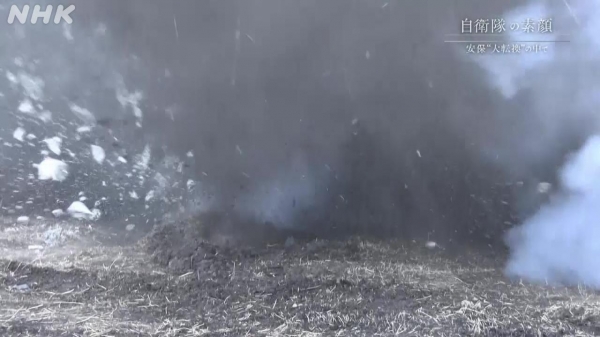 今年3月,日本陆上自卫队施设科部队在演习场测试爆破琉球石灰岩 图片来源:NHK专题片截图
