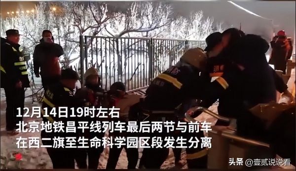 列出分成两半!12月14日晚,多名乘客发视频称,北京地铁昌平线发生故障,列车从中间断开了,引起了广泛的关注。
