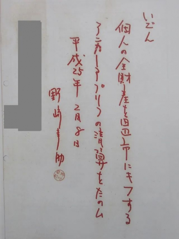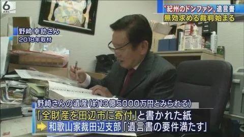 富豪无儿无女,坐拥几十亿资产,须藤的用心显而易见。但事实上野崎早在2013年就对自己的财产安排做好了遗嘱,全部捐献给他的家乡田边市,一共13亿2000万日元,约合人民币8千万元。