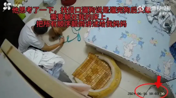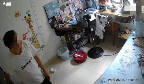 果不其然在6月16日的时候她的监控拍下了令人头皮发麻的一幕,6月16上午10点左右,女孩妈妈的男朋友在没有经过女孩允许的前提下偷偷的溜进女孩房间。看他进入房间时神情自若没有一丝慌张,看来已经不止一次偷偷进入过女孩房间!