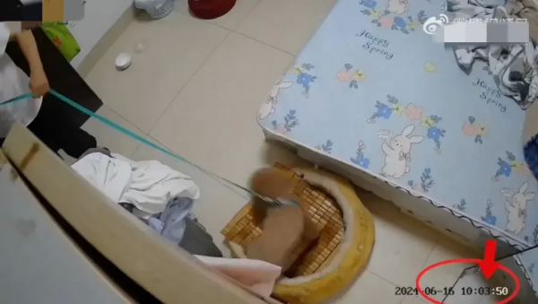 然后不顾小狗的挣扎强行将小狗拖走!女孩晚上回家后打开视频发现了这一幕她非常生气,于是立马将这件事告诉了自己母亲!可那个男人却试图颠倒是非黑白,竟然谎称他是来到女孩房间准备遛狗,由于遛狗太累了。所以才躺在女孩床上休息了一会儿!