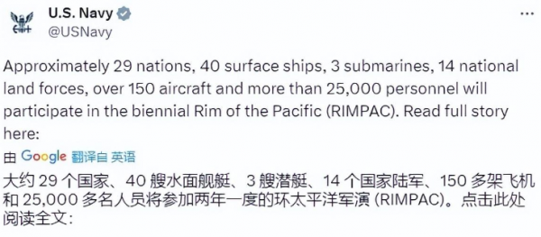 随着美西方在外交途径的完败之后,不服输的美国又随即宣布2024年"环太平洋军演",共计29国参加,其人数为2.5万人,时间为6月26日至8月2日。