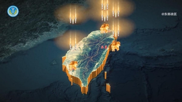 在东部战区24日公布的两段模拟CG动画中,还演示了解放军对台北、高雄、花莲这三个"台独"支撑柱、"台独"大本营、"台独"输血管的多轮导弹打击,以及对台北、花莲、台中、高雄及台东五县市的战备警巡。