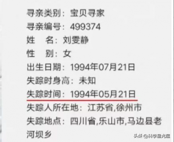 2020年,刘雯静听人说有一个叫做"宝贝寻家"的网站,上面可以录入个人信息,通过大数据对比,也许可以增加找到亲人的概率。