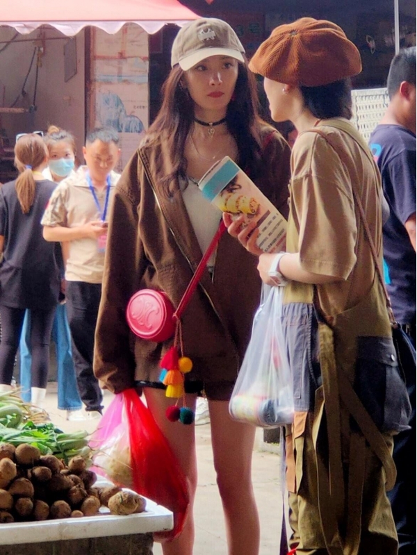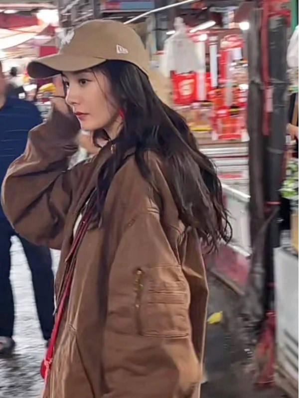 杨幂罕见去买菜,带火了一种新穿法:大外套+短裤+马丁靴,好洋气