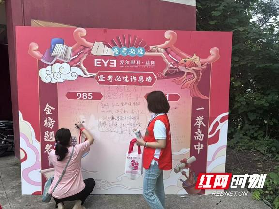 益阳箴言中学考点门口,家长为孩子们写下美好的祝福。