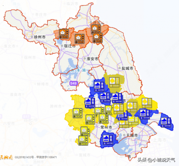 温馨提示:江苏这轮强降雨累计雨量大,土壤含水量高,地质灾害具有滞后性,需继续做好地质灾害等次生灾害的防范工作,注意交通安全。