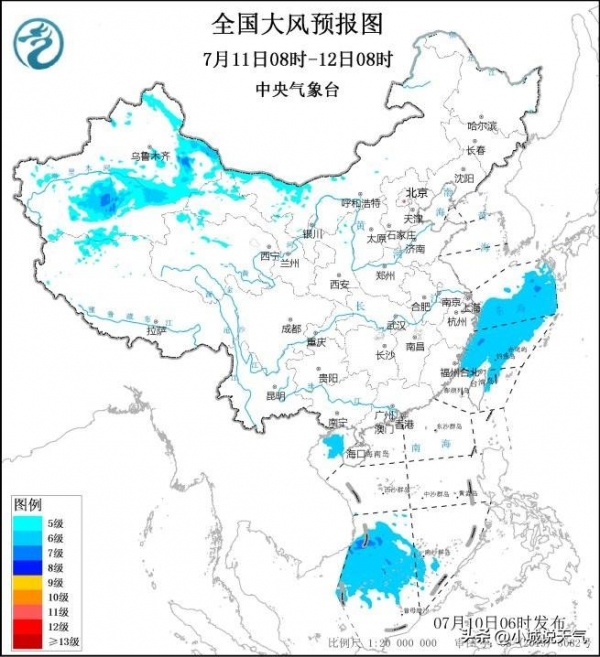 风力方面,全省将受到3到4级的偏北风影响。在雷雨地区,特别是在雷雨发生时,可能会有短时阵风,风速达到8至10级,对户外活动和交通造成一定影响。