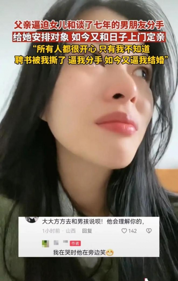 想起这些,父母心急如焚。担心女儿太过执拗,不听他们的建议,父母干脆来了个先斩后奏,在未经她同意的情况下,替她做了主,直接找了个相亲对象定了亲。