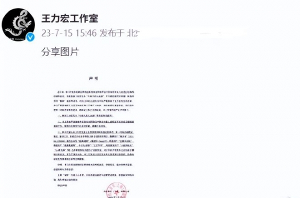 7月15日,王力宏工作室发表声明,表示网传王力宏"与他人四人运动"等言论均系谣言,已委托律师处理此次事件,启动搜证、取证、备诉工作,坚决对网络造谣、恶意抹黑行为零容忍。