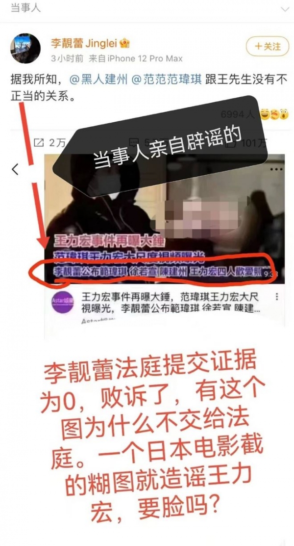 2、李靓蕾此前曾发布过一条动态,称"据我所知,陈建州、范玮琪跟王力宏之间没有不正当关系",而徐若瑄此前也公开否认过与王力宏存在不正当关系的传闻。