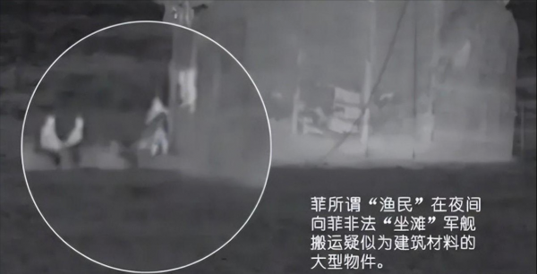 据报道,菲律宾此次利用夜色掩护,采用一系列秘密行动,试图加强在仁爱礁非法"坐滩"的马德雷山号军舰。