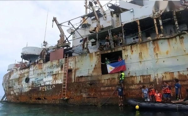 据了解,这艘军舰自1999年起,就被菲律宾军方故意搁浅在仁爱礁上,多年来一直是中菲双方争议的焦点。