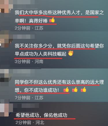 当网友听到"攻克"二字时,眼泪忍不住的流,真心为他骄傲。祖国太需要这样的有志少年了。这样的梦想超越了几亿人。