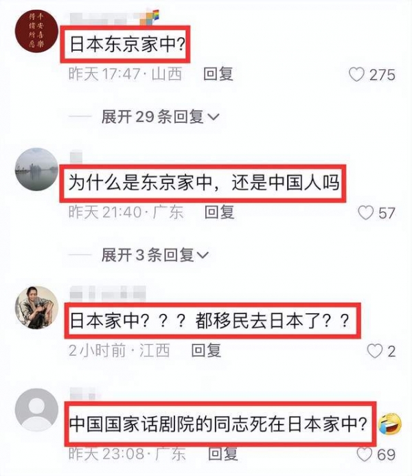 讣告一经发出触动了不少网友敏感的神经,有网友质疑他不爱国,不理解他为何不在国内生活而要去日本生活。还有不少网友说话很难听,留言说他是典型的国内挣钱国外花,更有甚者质问他退休金是日本发吗?还是中国人吗?