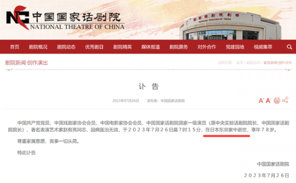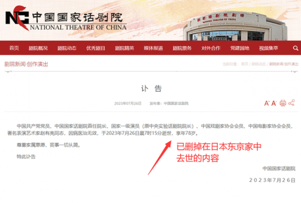 眼看着大家的焦点都放到了这个问题上,中国国家话剧院为此更改了讣告内容,将"在日本东京家中逝世"的内容给删掉了,这个举动无疑是看到了大家的讨论,只不过即便如此,也没有平息外界的舆论,网友对这个问题也是相当在意。