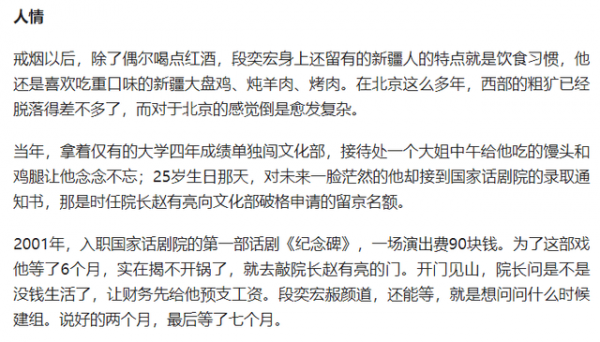 在采访中,段奕宏曾透露当年入职国家话剧院拍摄第一部话剧时实在揭不开锅了,就去敲了赵有亮的门,赵有亮开门见山问他是不是没钱生活了,就让财务先给他预支了工资,对段奕宏来说,赵有亮是他人生中的贵人,改变了他这一生。