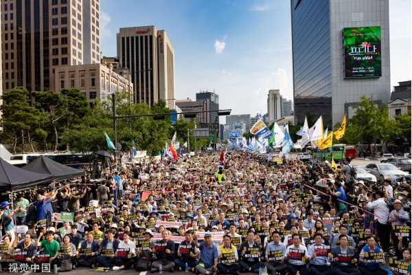 主办方推算当天有5万人参加抗议活动,韩国警方则估算有7000多人,但警方表示尚未统计准确人数。