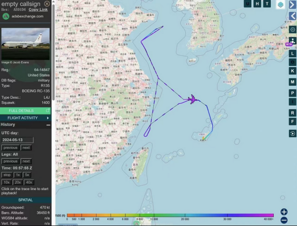 RC-135U战斗派遣电子侦察机虽然服役时间长达59年,但是依旧被美国视作珍宝,而RQ-4B全球鹰无人机和MQ-4C海神之子无人机都没能够撼动该型战略级侦察机的地位。根据媒体披露的信息来看,在5月13日当天RC-135U战斗派遣电子侦察机就紧贴江浙沿海一带一路北上,并且前往了黄海一带海域进行抵近侦察,而如今被拍摄到进行海试的隐身舰艇似乎是在渤海海域,RC-135U战斗派遣电子侦察机能否凭借其机载设备的优势实现侦察呢?