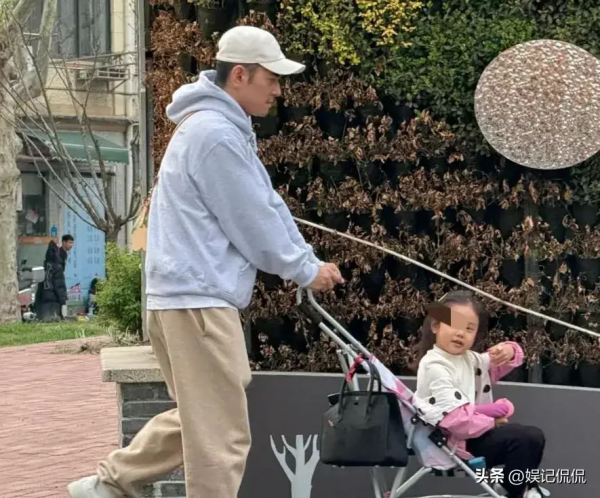 曝主持人李晨上海遛娃!推简易婴儿车太低调,女儿五官清秀超像爸