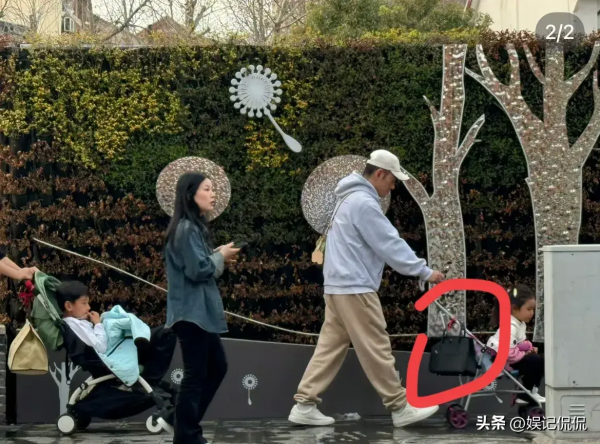 虽然推车的大人没有露出正脸,但看皮肤的细腻程度也能看出,想必是李晨和妻子一同外出遛娃,推车上的女士爱马仕包包抢眼十足。