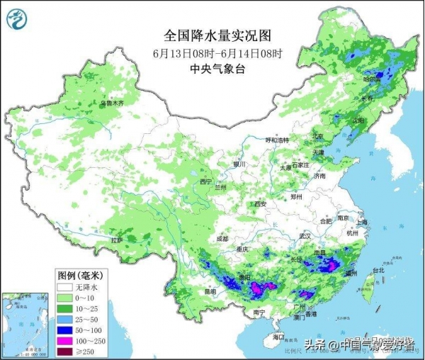 本次降雨还有一个显著特点就是雨量大、范围广、持续时间长。这种情况在梅雨季节尤其明显,每年的六七月份是我国南方的梅雨季节,降水集中且频繁。尽管梅雨带对农业灌溉有一定积极作用,但过量降水也容易引发洪涝灾害。目前,我国南方的部分地区已经感受到了这场大雨带来的影响。从实际情况来看,6月13日-6月14日,到云南贵州广西广东福建江西等地出现了暴雨,局地大暴雨,广西永福出现特大暴雨。
