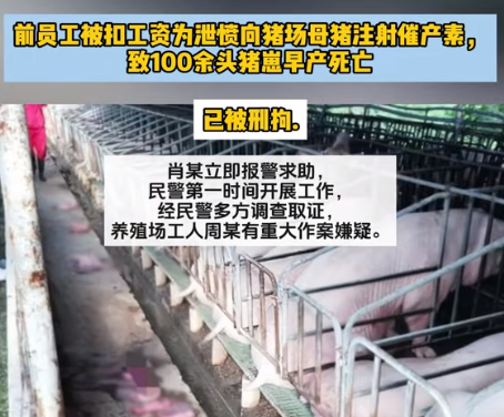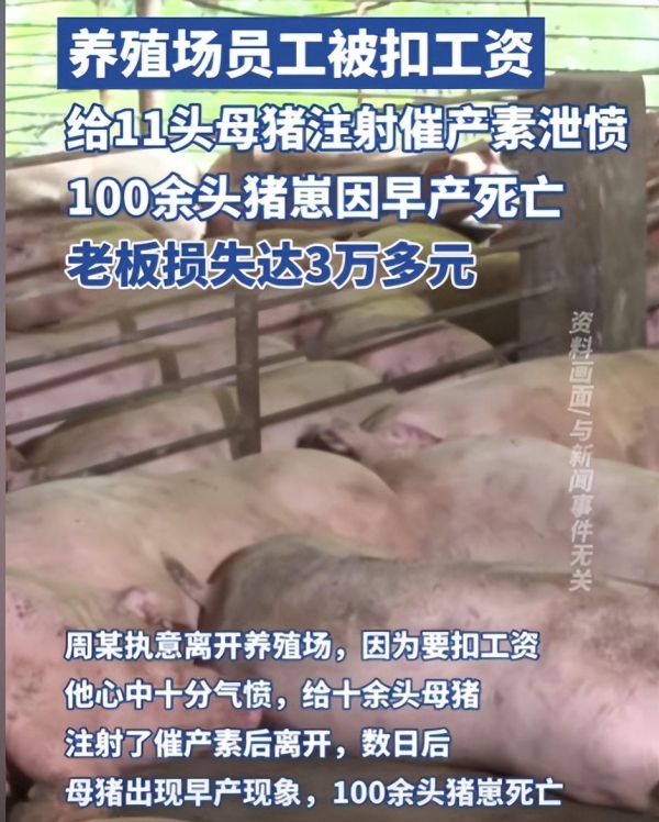 员工为泄愤向母猪注射催产素!致百余头猪崽丧命