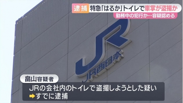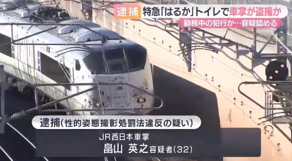 据报道,被逮捕的是来自JR西日本特快列车「haruka」的一名列车员,名字叫畠山英之(32岁)。
