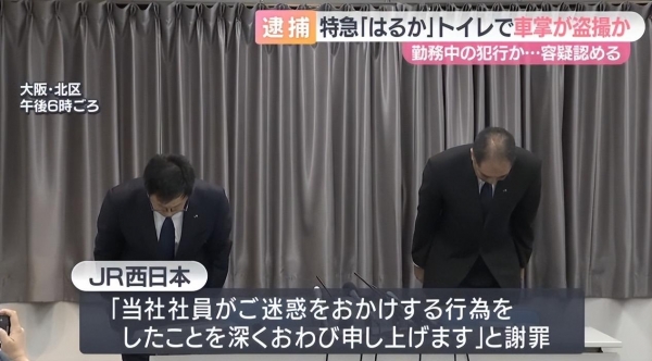 11月22日,针对员工因偷拍被逮捕的事情,JR西日本召开了记者会,公司的上层干部鞠躬道歉,并表示给顾客带来的不便深感歉意,今后会避免此类事件再次发生。