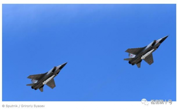 普京在新闻发布会上称:"按照我的指示,俄罗斯空天军开始在黑海中立水域上空执行常态化巡逻任务。俄军米格-31战机携带有'匕首'导弹。"