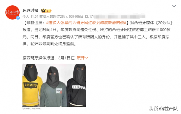 一对西班牙网红夫妇去印度旅游,遭到了强奸。男的被打得不敢作声,女的则被7人轮奸了。为了弥补这对西班牙夫妇,印度政府决定赔偿1.1万欧元,大约8.5万人民币。这个补偿不算多,但印度政府觉得自己是仁至义尽了。