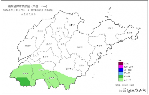 预计16号,鲁南有阵雨或雷阵雨,雨量以小到中雨为主。