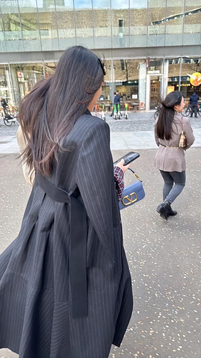 出去外面的时候,王诗龄又披上一件长款黑西装外套,走路带风,跟妈妈李湘一样,很有气场。