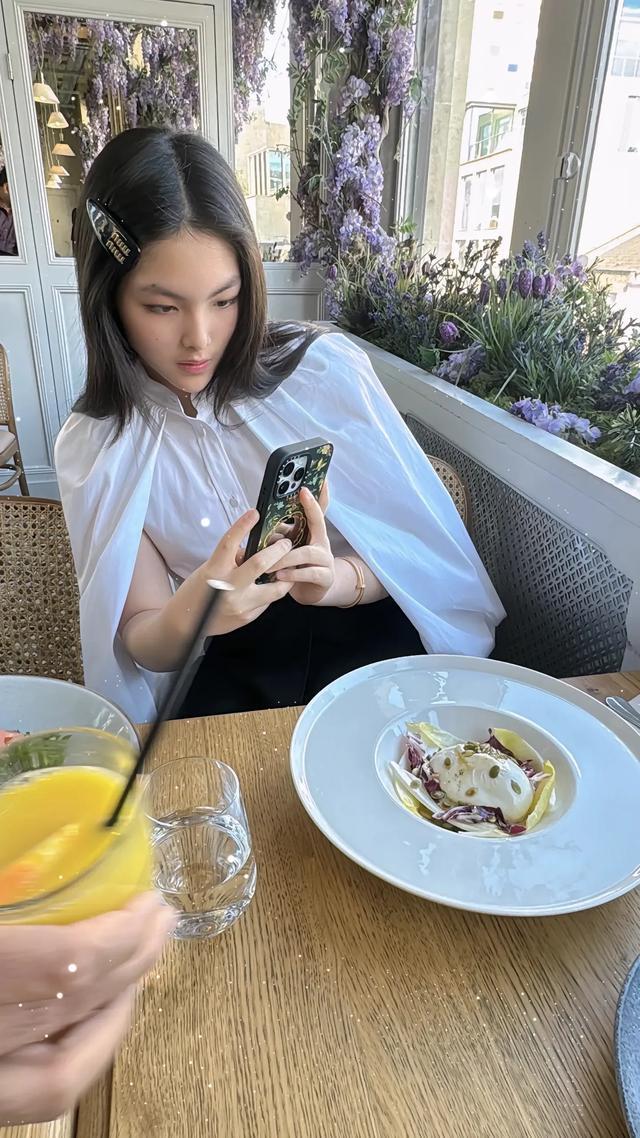 王诗龄也很喜欢拍照记录生活,面对美食也是让手机先吃,拍照的模样真的好认真,还仔细挑选角度,果然女孩子都一样呀。
