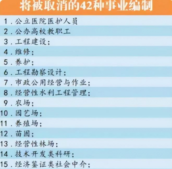 网传消息称有42类事业编将会在这次改革中被取消,有的属于基层岗位,有的是高层岗位,医院的医护工作者,工程建设与维修等岗位都在其中。