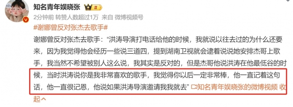 洪涛发文为张杰鸣不平,称其为去歌手顶巨大压力,还曾退钱赔款