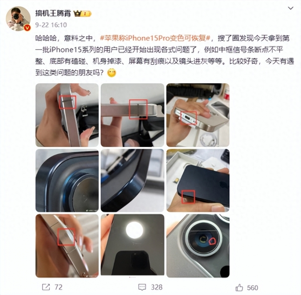满心欢喜的入手了全新的iPhone15,结果却遇到了掉漆、摄像头有灰尘等问题,换机几次依然还存在问题,作为一个普通的消费者,你还会对iPhone15系列抱有希望吗?不可否认,使用苹果的生态后,或习惯或真爱,果粉不太愿意更换其他的品牌,但如果苹果再端正态度,且无法给消费者带来新鲜感,又怎么走得远呢?