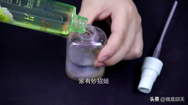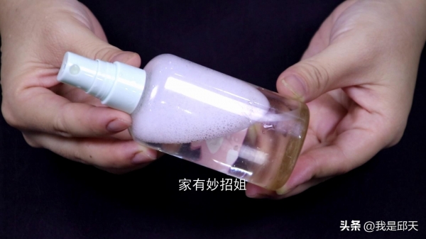 最后再往喷壶中接入一点清水稀释,再将盖子盖紧,摇晃一下,那么这样一个清洁电风扇的溶液就调制好了。