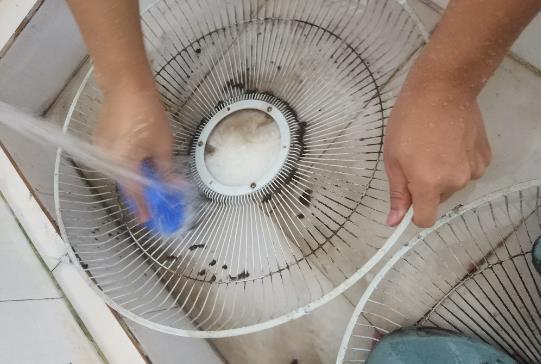 我们把整个风扇都用溶液擦拭过后,再拿块干净的抹布擦拭一遍,把残留都擦干净,这样我们的电风扇就都清洁好,方法简单快速,不用拆也不用卸。下次清洁电风扇,不妨试试这个方法。