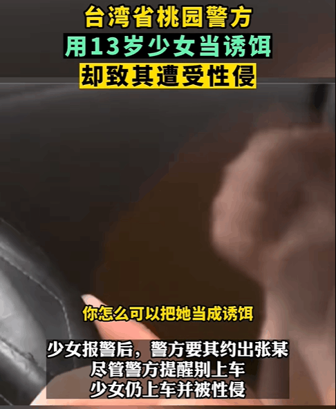 近日,在台湾发生了一件令人匪夷所思的事情。一名13岁少女报警竟被警方要求充当"诱饵",至使少女被当面带走,然后遭到歹徒性侵!