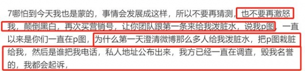 令人在意的是,当时吴楚一发文替陈牧驰澄清同性绯闻之后,立马就有人怀疑他是"自导自演",吴楚一在直播里回应称自己也很懵,甚至提到自己是被泼脏水,栽赃陷害,包括他的私人电话地址等也都是被有心人公开的,他已经在调查并起诉,但言语之中似乎已经有了指向。