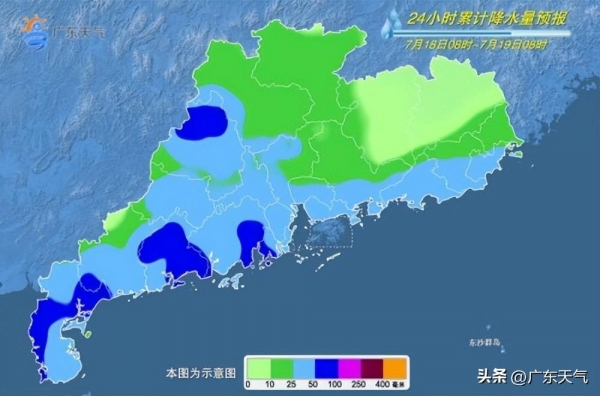 未来几天具体预报:18日,广东中南部市县有大雨到暴雨局部大暴雨,北部市县有中到大雨局部暴雨。白天粤西、珠江三角洲南部沿海市县和海面平均风6级~7级、阵风9级,夜间转平均风5级、阵风6级。