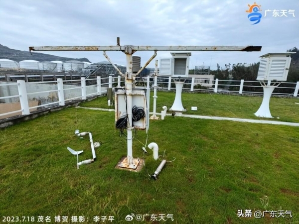 受台风"泰利"影响,7月17日,位于南海之滨的广东茂名博贺海洋气象观测站测得平均风40.5米/秒(13级),阵风53.3米/秒(16级)。由于风速大,站内海洋广播电台天线、空调、监控等仪器设备在加固的情况下,仍出现不同程度的损毁,大量树木倒伏。(图/李子平)