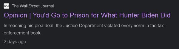在美国的舆论场上,还一直有声音认为亨特能通过认罪协议免于坐牢本就是一种特权。亲共和党的美国《华尔街日报》评论版最近就刊登了一篇吐槽此事的评论文章,称如果换做是一个普通人违反了亨特违反的那些法律,他们早就得去坐牢了。