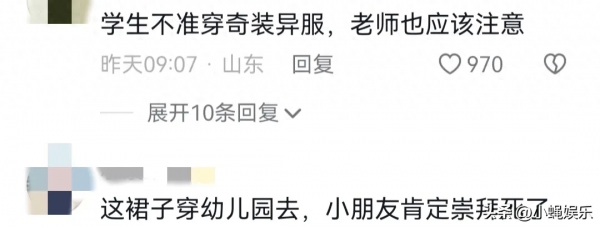 虽然很多学生也都喜欢时尚思想活跃的老师,但是时尚并不是奇装异服的标签。安徽这位老师的裙子如果放在生活中真的没什么,算不成奇装异服,还很有气质。